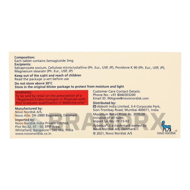 - Rybelsus 3 mg Novo Nordisk